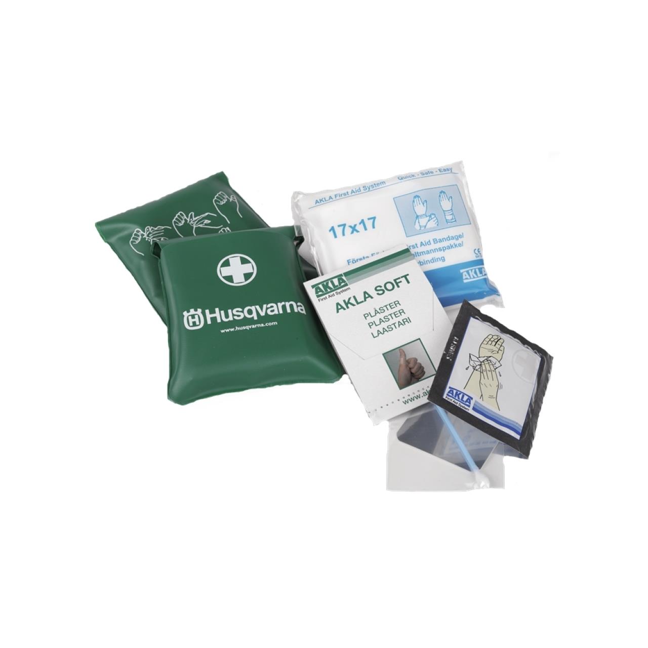 Beinhaltet Bandage, 9 Pflaster, 1 Spiegel, 2 sterile Binden, 1 Wattestäbchen und 1 Druckverband.