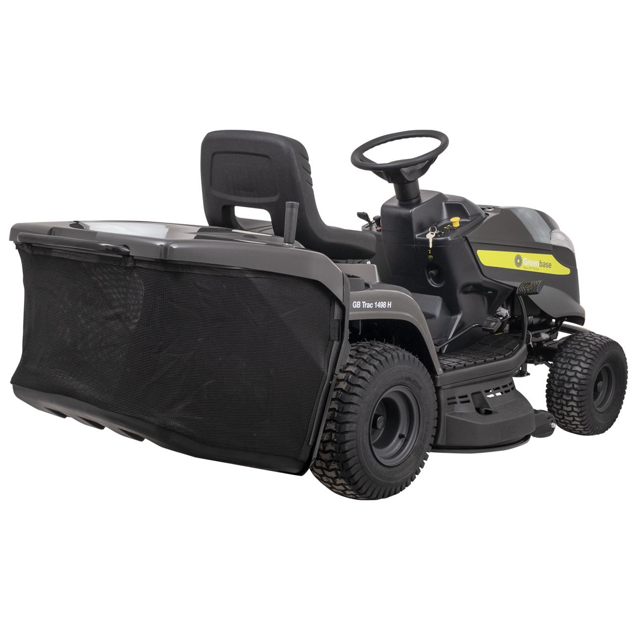 Der Rasentraktor GB Trac 1498 H von Greenbase ist für das Sammeln großer Mengen geschnittenen Grases ausgelegt und wird von einem STIGA ST 550-Zweizylinder-Motor mit einer Leistung von 10,4 kW – 2600 U/min angetrieben.