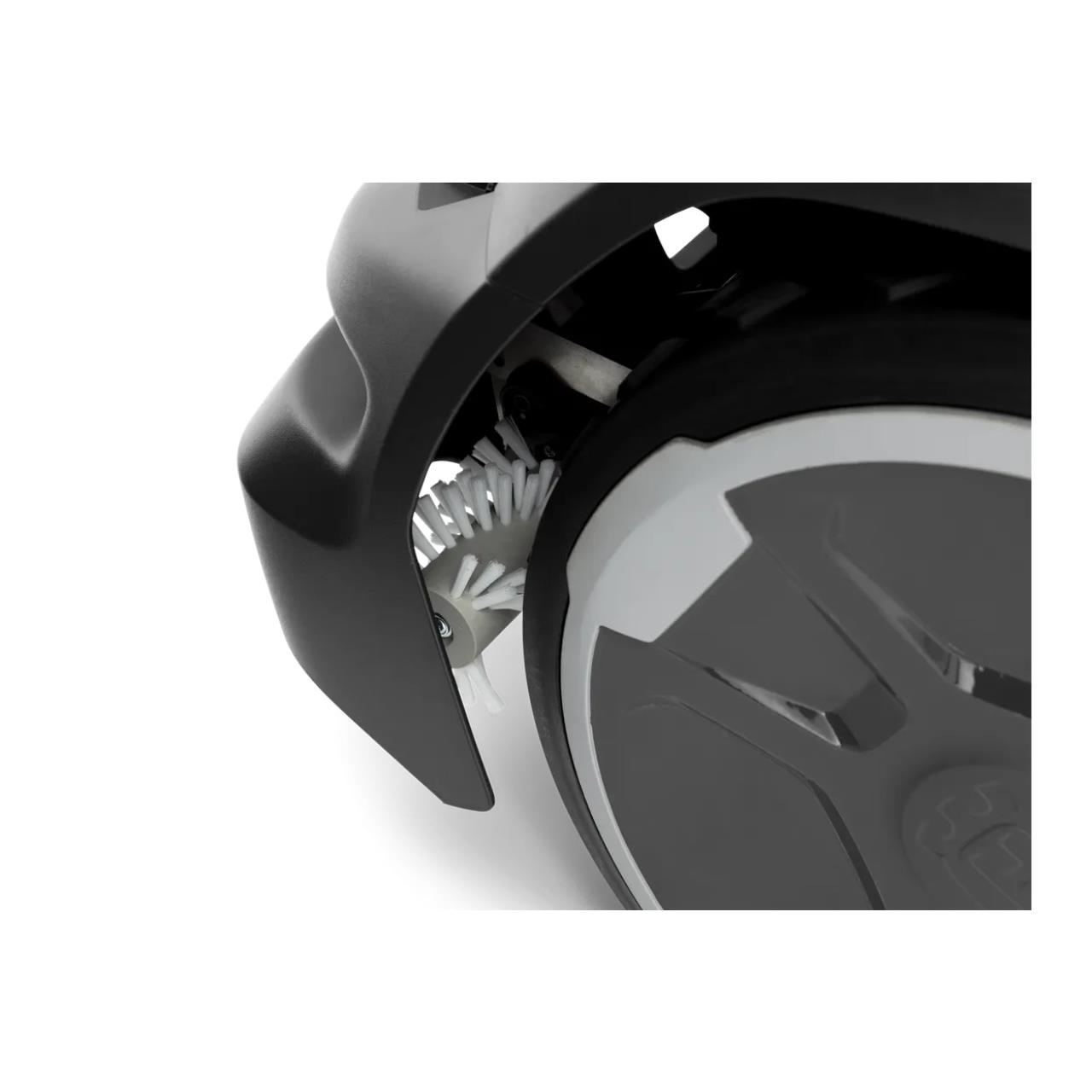 Die Radbürsten sorgen dafür, dass die Räder des Husqvarna CEORA ™ nicht zu sehr verschmutzen und fördern damit auch die Weiterfahrt des Großflächenrobotermähers auch bei schlechten Wetterbedingungen.